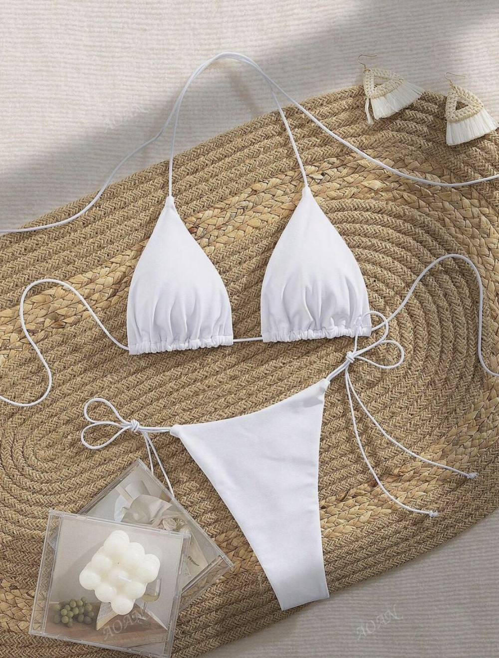 Indulge in timeless style with our Classic two piece triangle swimwear. Its flattering design makes it perfect to wear under a cover up or on its own, providing both versatility and elegance. Crafted with premium materials, this piece is a must-have for any swimwear collection.