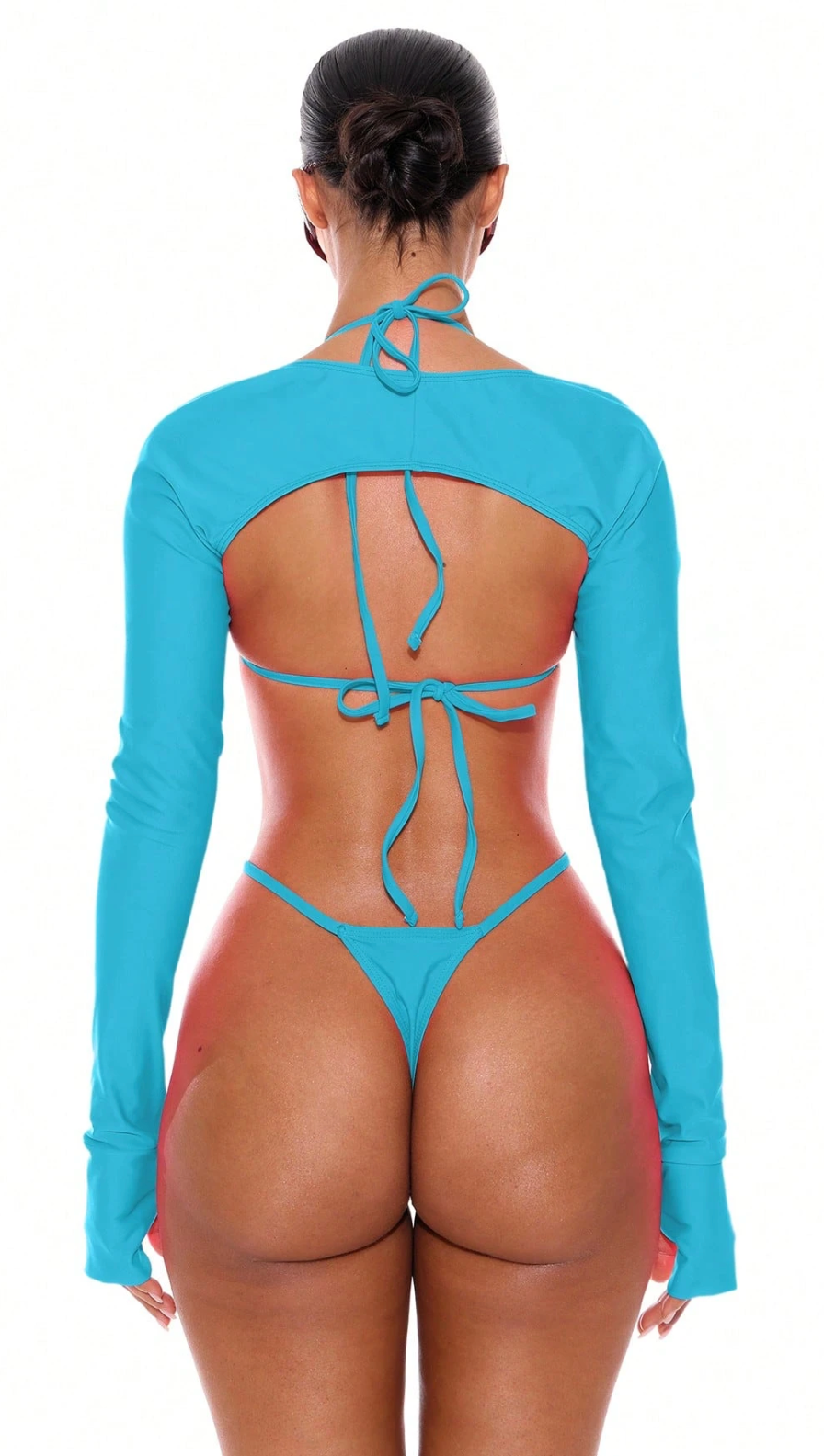 The Kim B swimsuit set redefines bold beachwear with its three-piece design. Featuring a daring thong and a versatile two-piece that includes an optional sleeve, this set offers edgy style and customizable coverage. Perfect for those who want to stand out and express confidence by the water.